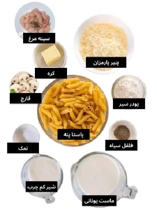 مواد لازم برای پاستا چیکن آلفردو رژیمی: